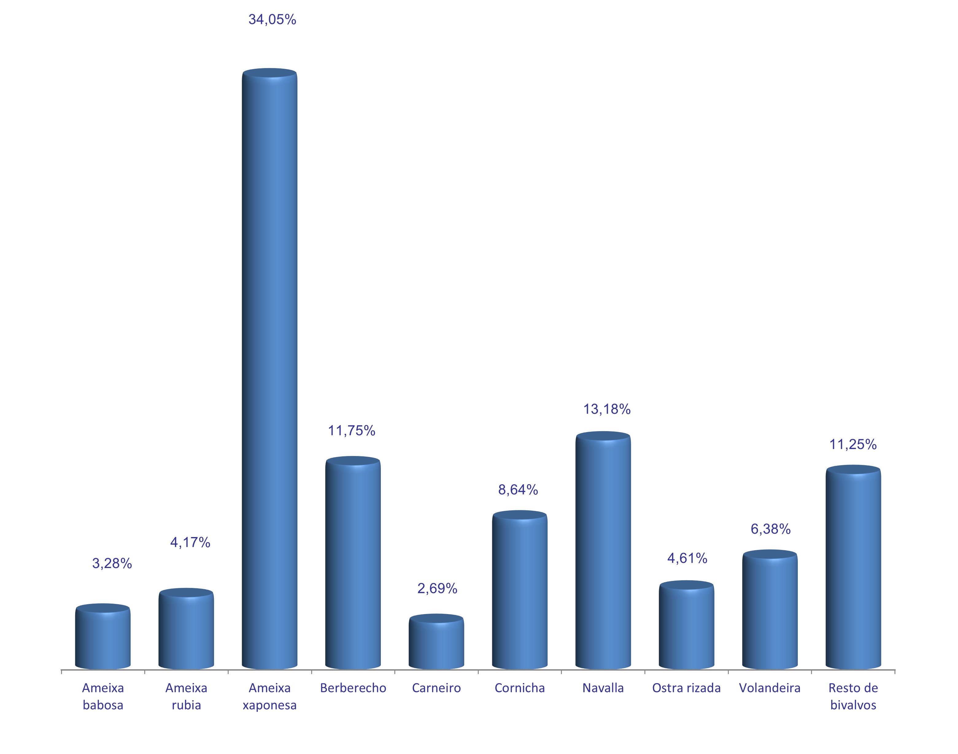 | Zamburiña | 3.069 | 0,08% | 56.479 | 0,13% | 18,40 |