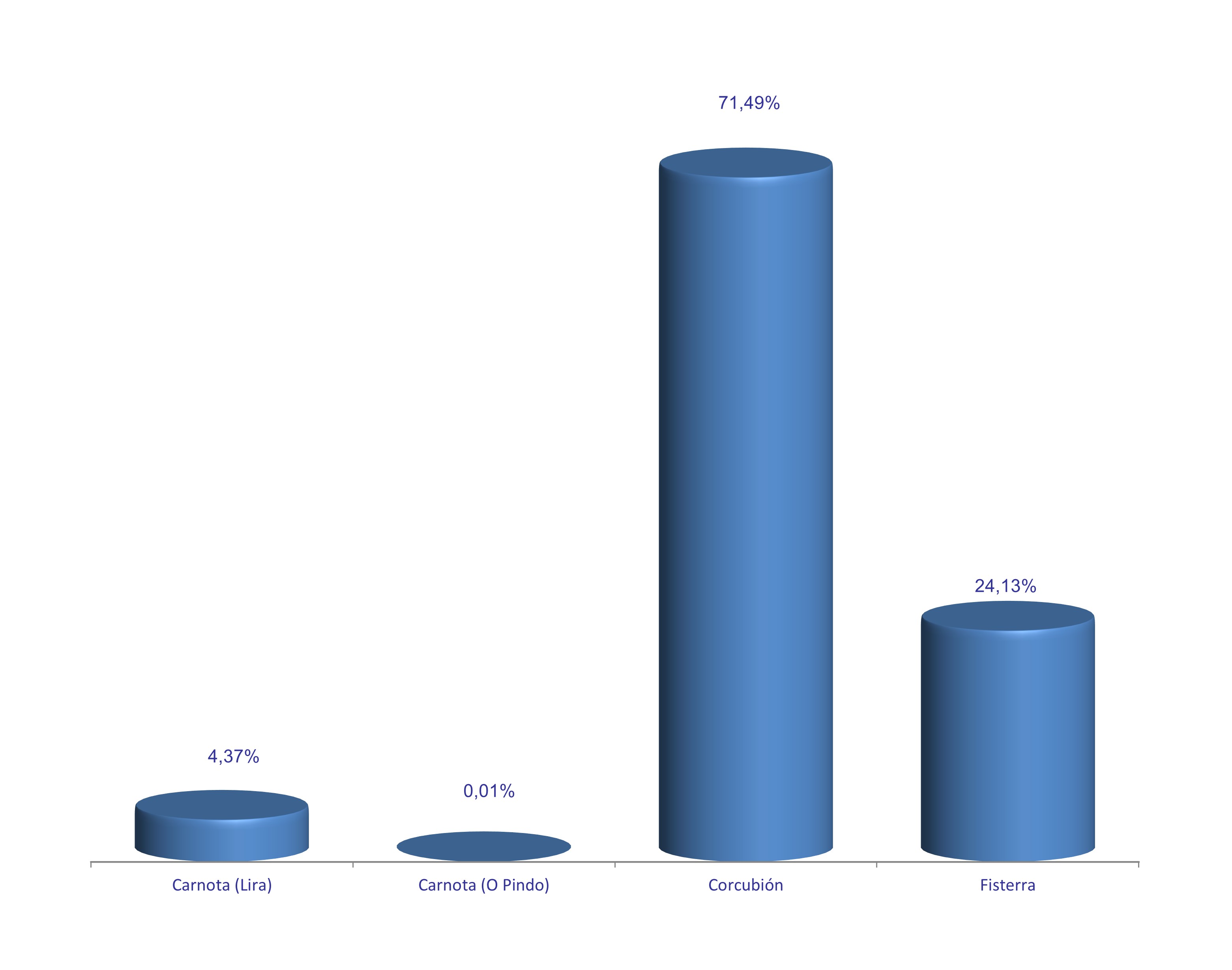 | Fisterra | 407.642 | 24,13% | 3.048.303 | 48,15% | 7,48 |