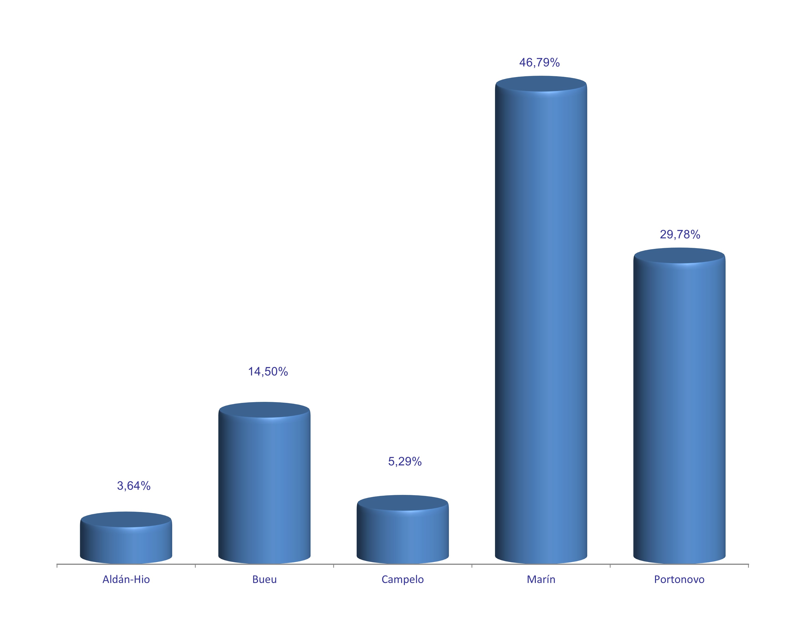 | Bueu | 356.616 | 14,50% | 2.695.470 | 24,61% | 7,56 |