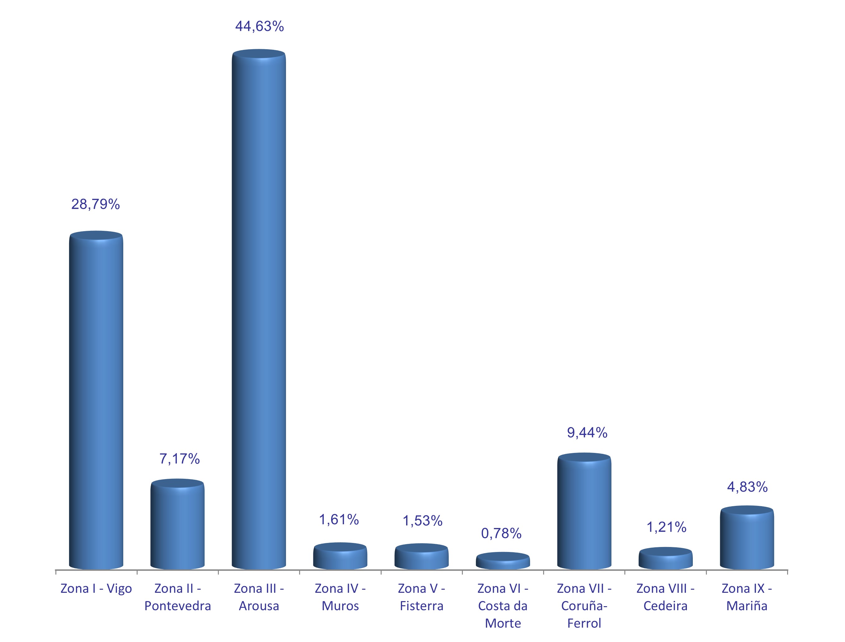 | Zona I - Vigo | 301 | 174.251 | 28,79% | 1.362.352 | 30,77% | 7,82 |