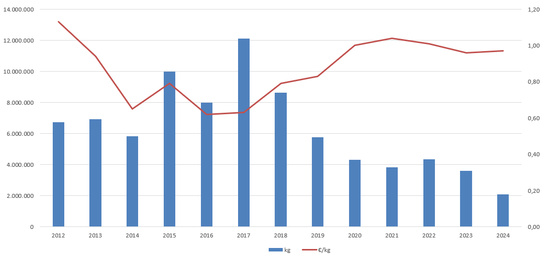 | Nº días | kg | % | Euros | % | Euros/kg | |