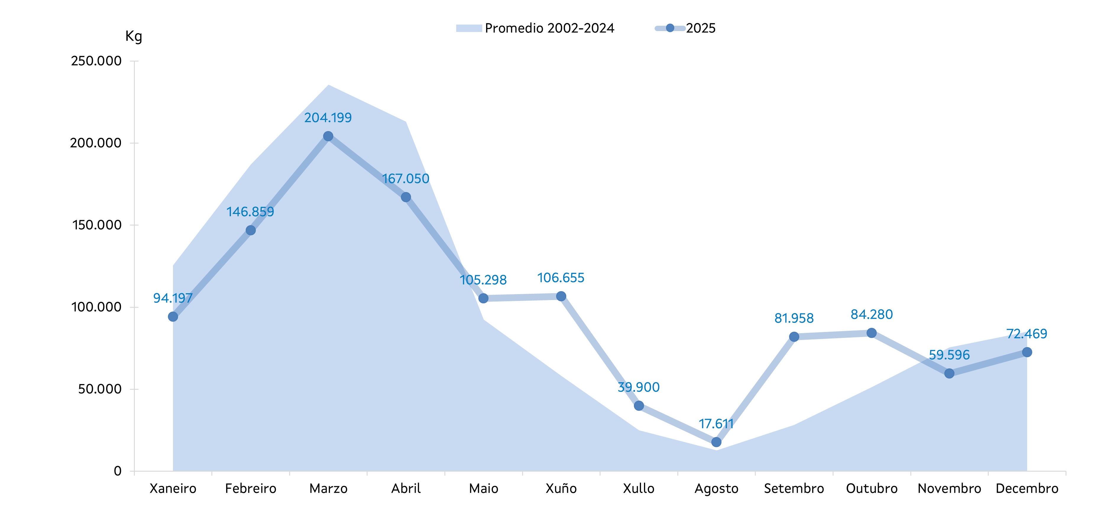 | Comparativa mensual doutros grupos no 2025 e 2024 | ||||||||
