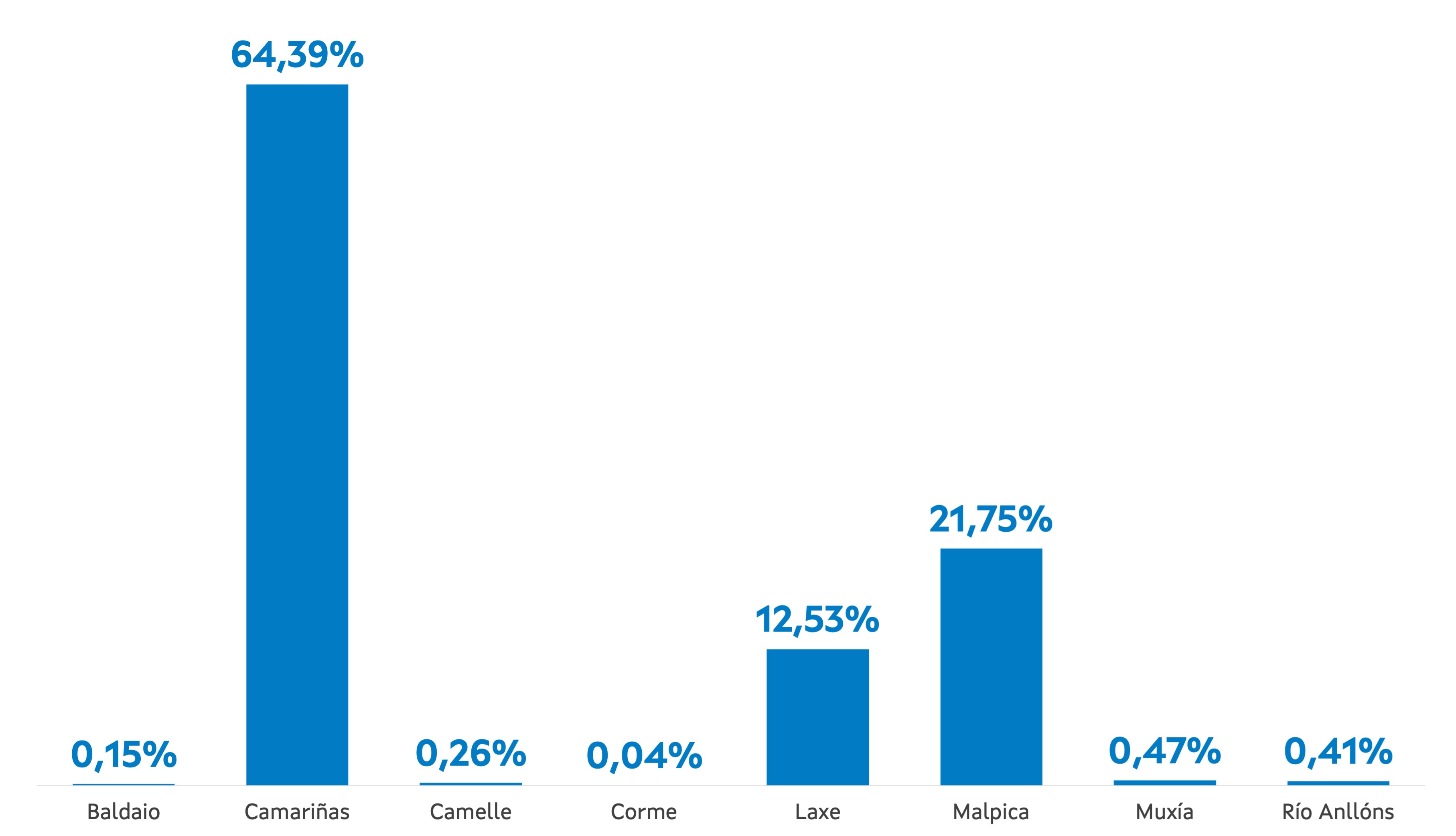 | Camariñas | 3.157.576 | 64,39% | 3.942.464 | 40,28% | 1,25 |
