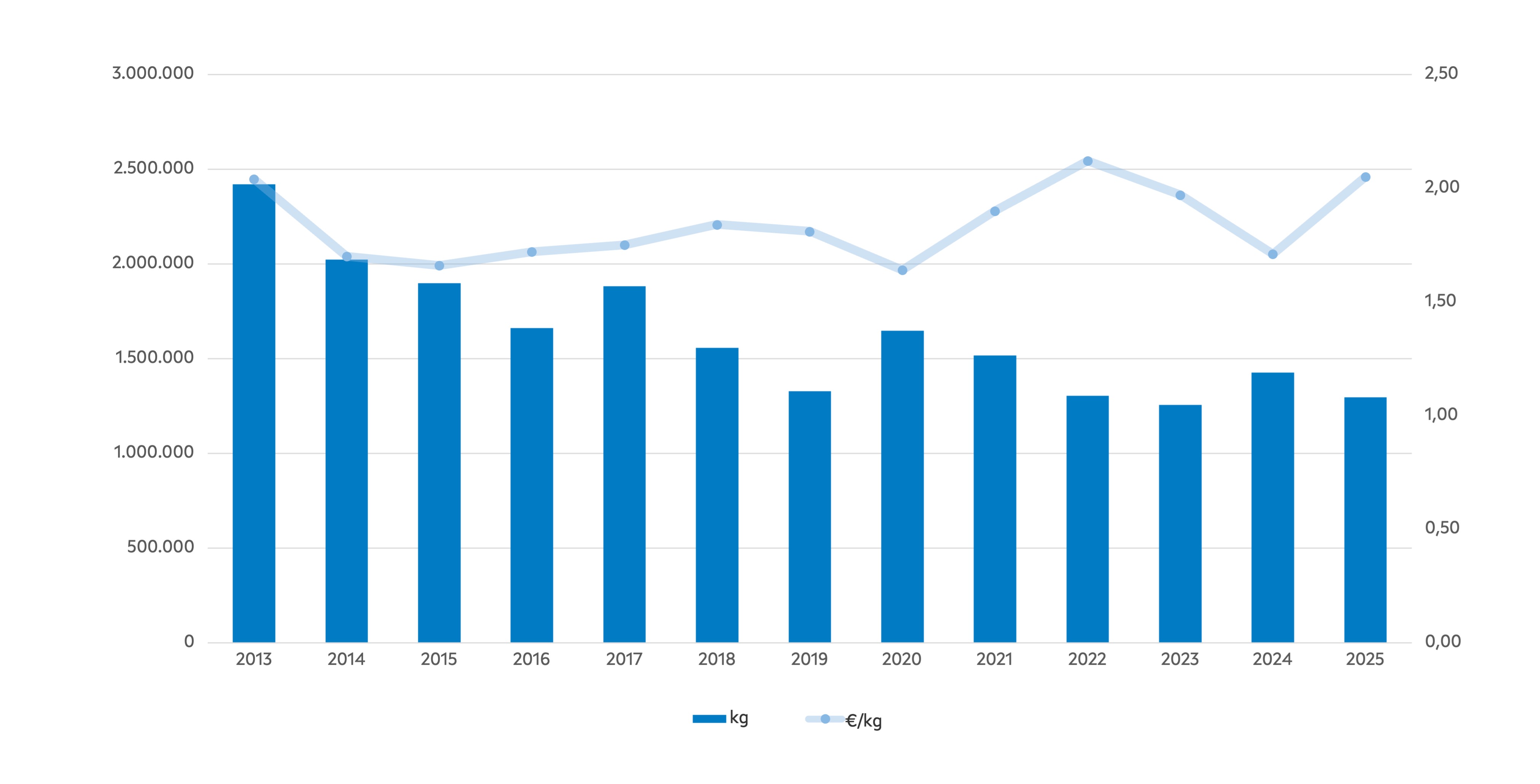 | Zona III - Arousa | 381.251 | 290.970 | 450.301 | 367.406 | 228.316 | 239.820 | 204.734 | 201.532 | 222.003 | 171.118 | 95.336 | ||