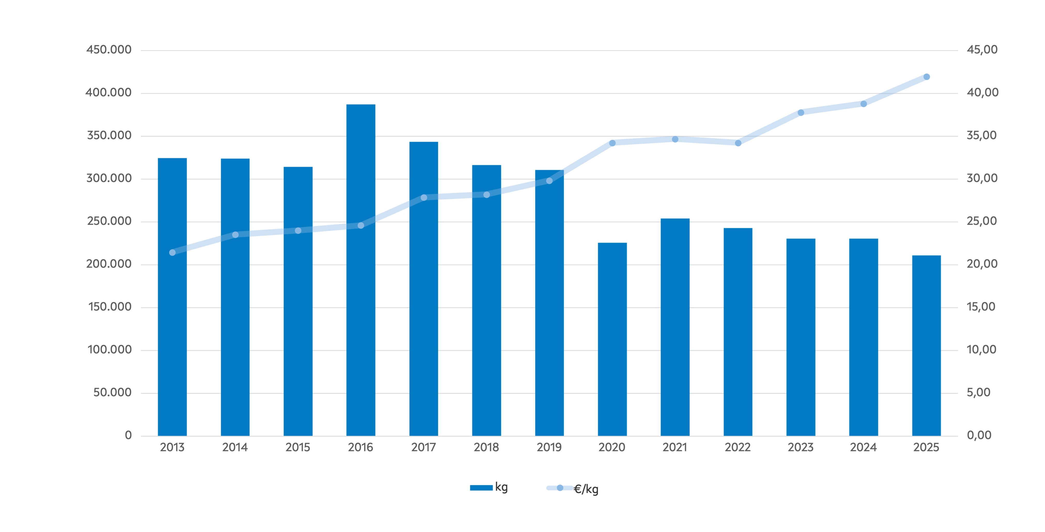 | Evolución das vendas de percebe por zona en cantidade (kg) | |||||||||||||