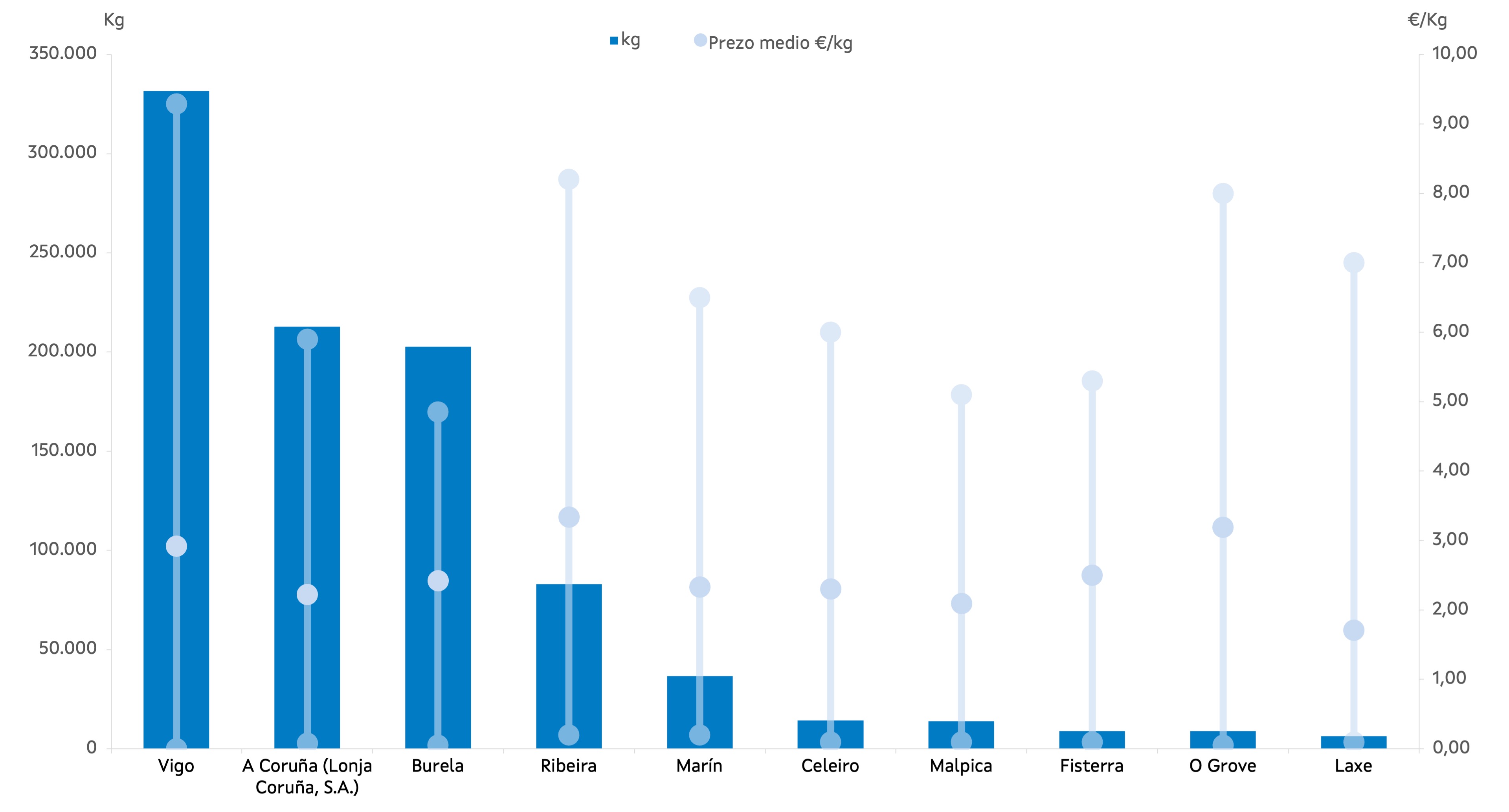 | A Coruña (Lonja Coruña, S.A.) | 246 | 212.744 | 22,87% | 472.794 | 19,30% | 2,22 |
