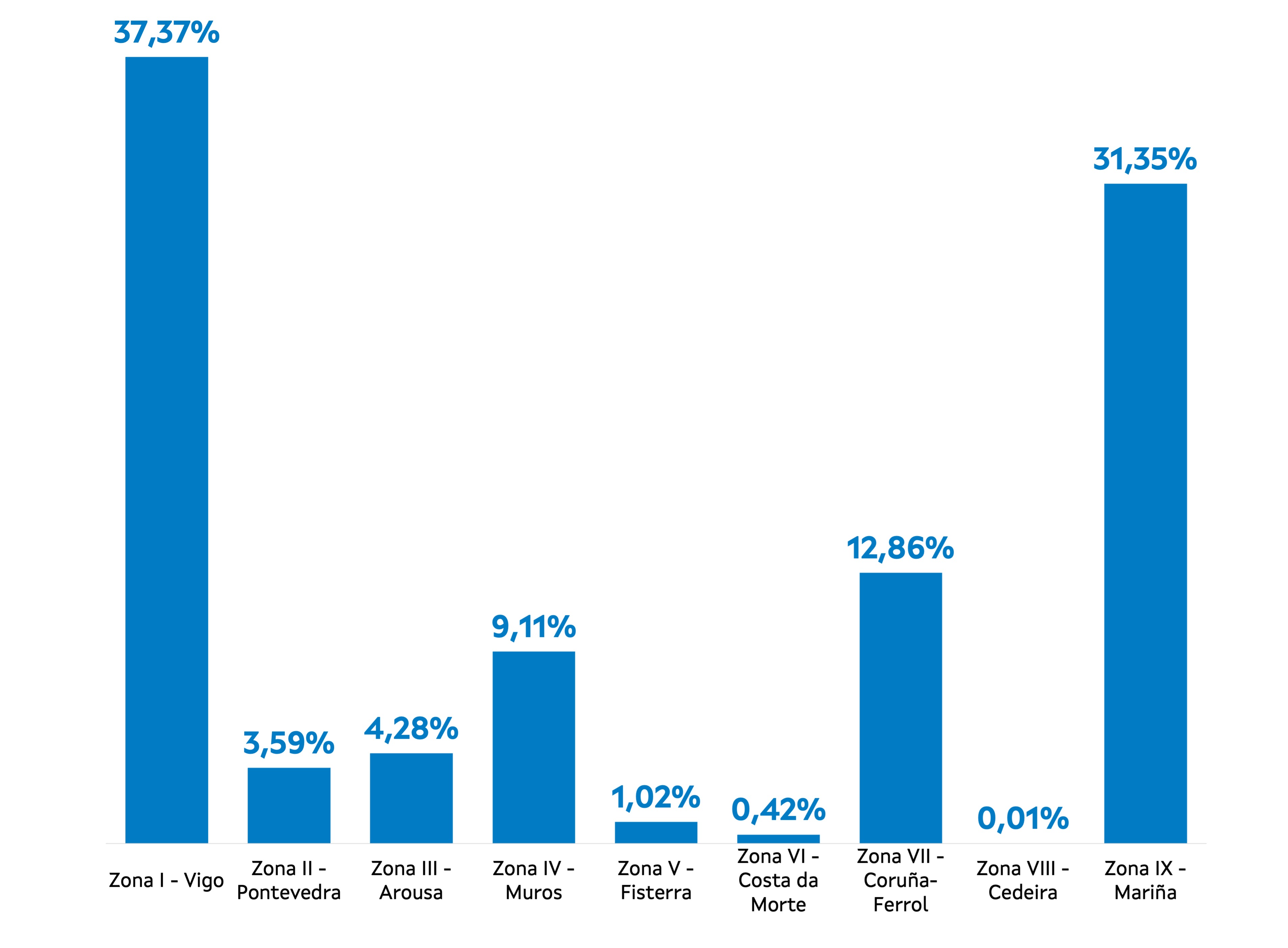| Zona VI - Costa da Morte | 79 | 3.800 | 0,42% | 4.031 | 0,46% | 1,06 |