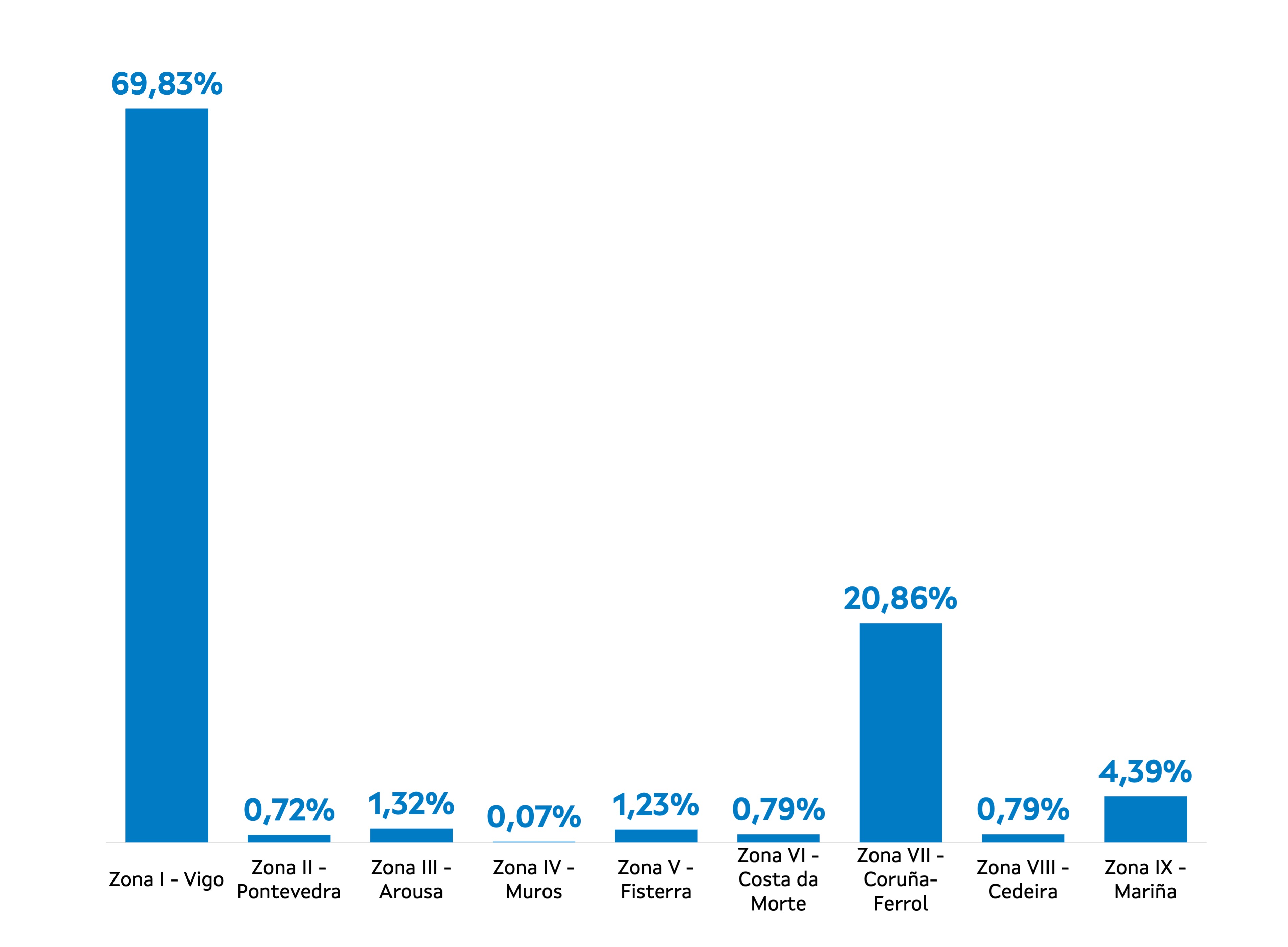 | Zona VI - Costa da Morte | 240 | 22.451 | 0,79% | 108.395 | 0,60% | 4,83 |