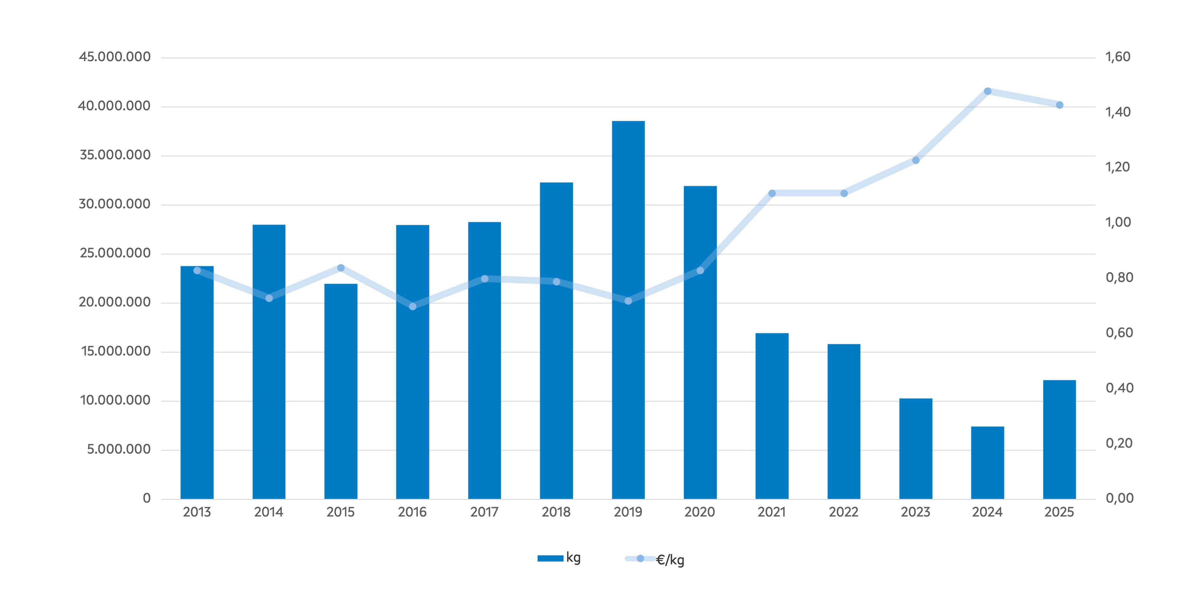| TOTAL | 21.961.619 | 27.966.500 | 28.258.772 | 32.292.751 | 38.568.540 | 31.949.209 | 16.938.467 | 15.816.177 | 10.302.590 | 7.423.725 | 12.142.537 | ||