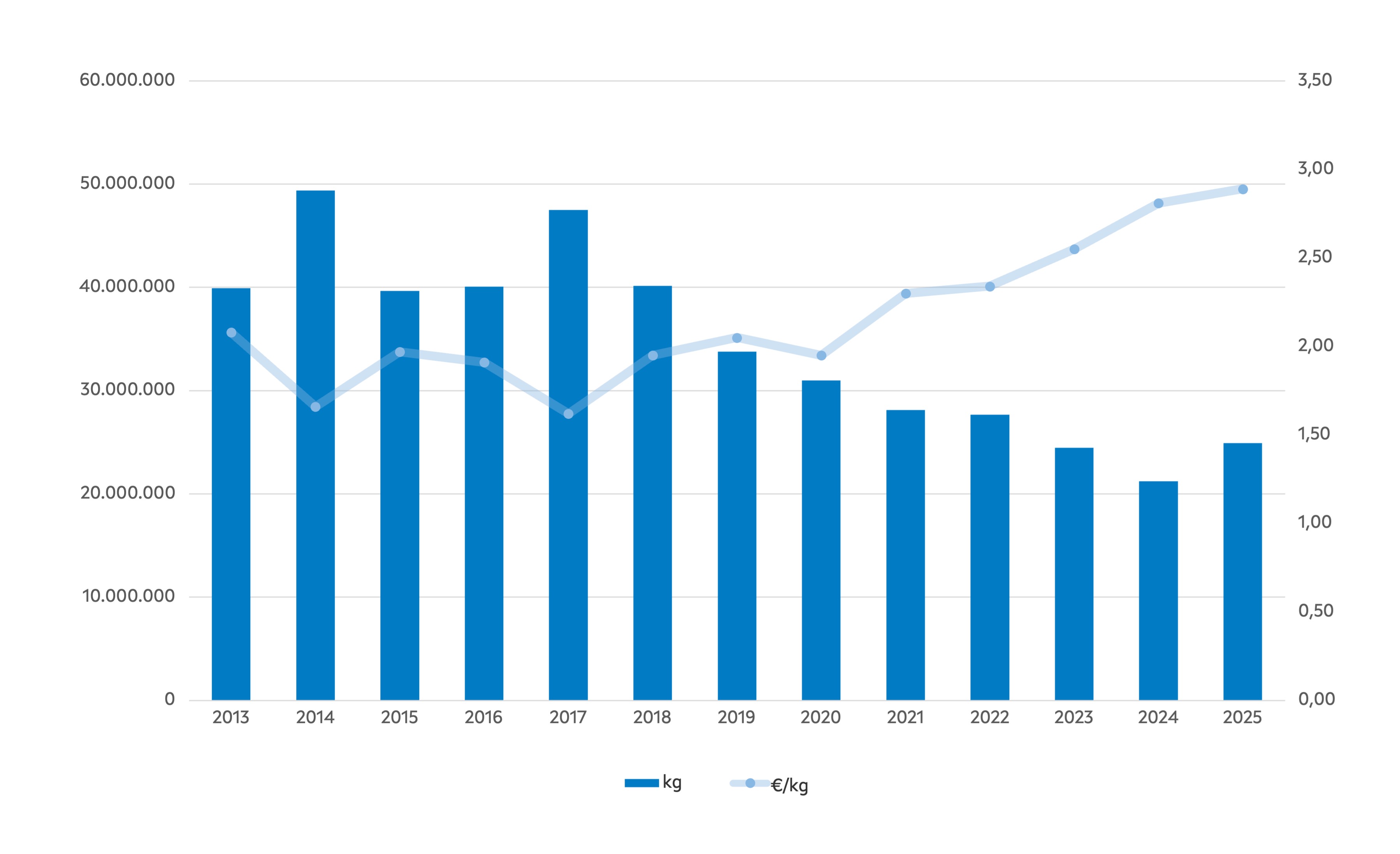 | Nº días | kg | % | Euros | % | Euros/kg | |