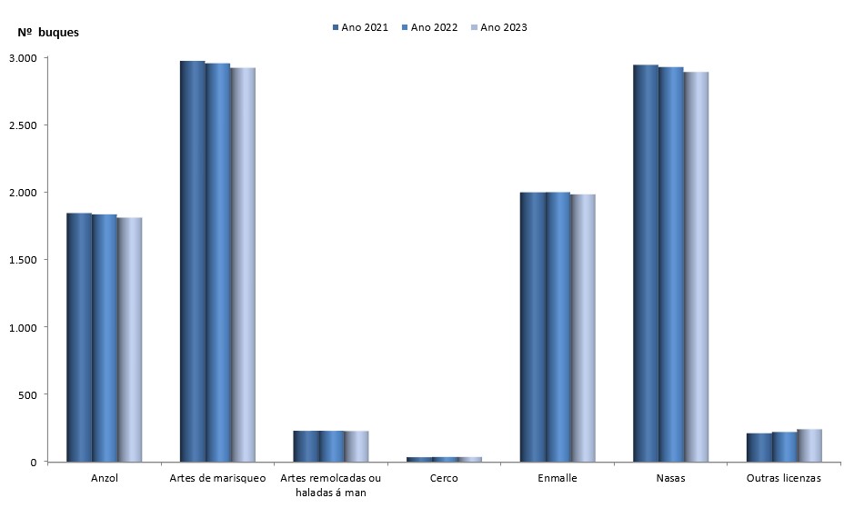 | Artes remolcadas ou haladas á man | 234 | -2 | 7,76 | 0,01 | 2,82 | 0,00 | 28,48 | 0,11 |
