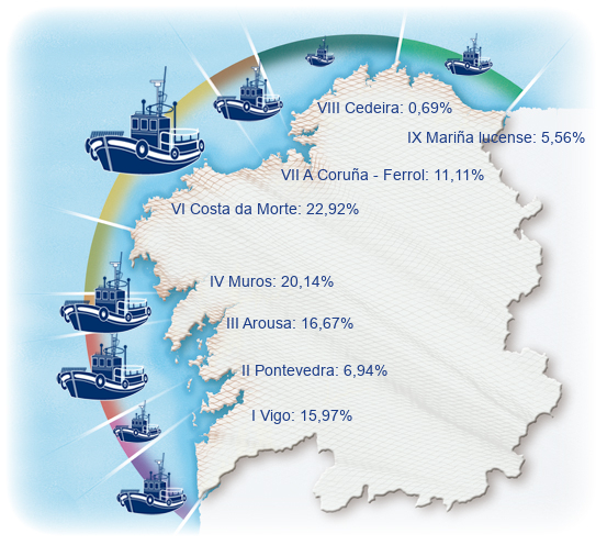 | Zona VIII - Cedeira | 1 | 0,00% | 0,69% | 0,01% | 21 | 0,00% | 160 | 0,00% |