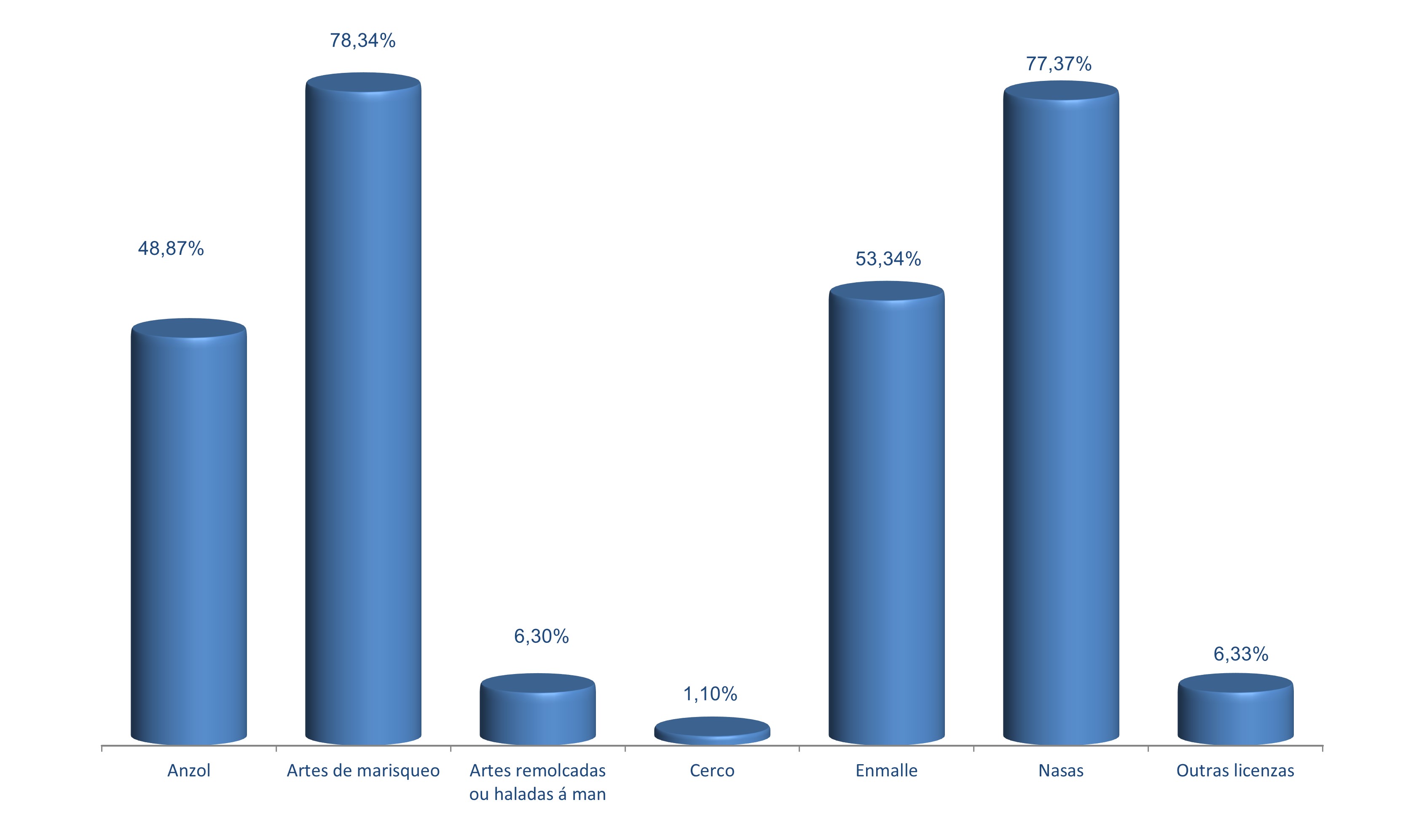 | Artes de marisqueo | 2.908 | -0,45% | 78,34% | 0,26% | 4.472 | -0,29% | 74.588 | -0,10% |