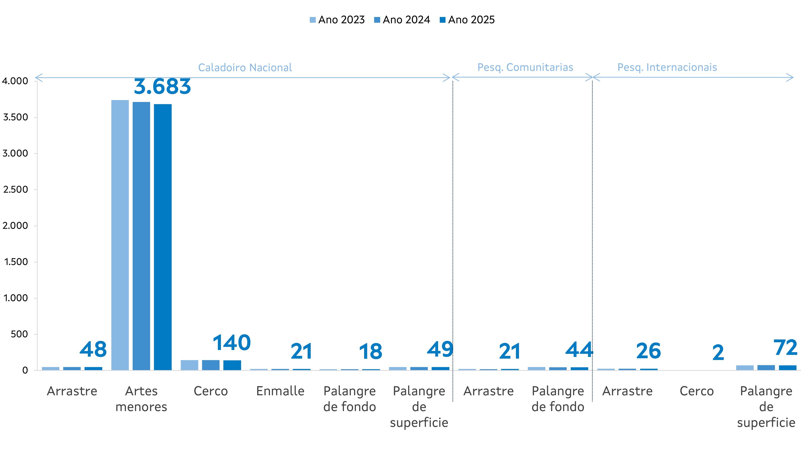 | Frota de pesca | 4.124 | -36 | 8,78 | 0,01 | 30,40 | 0,14 | 84,14 | 0,46 |