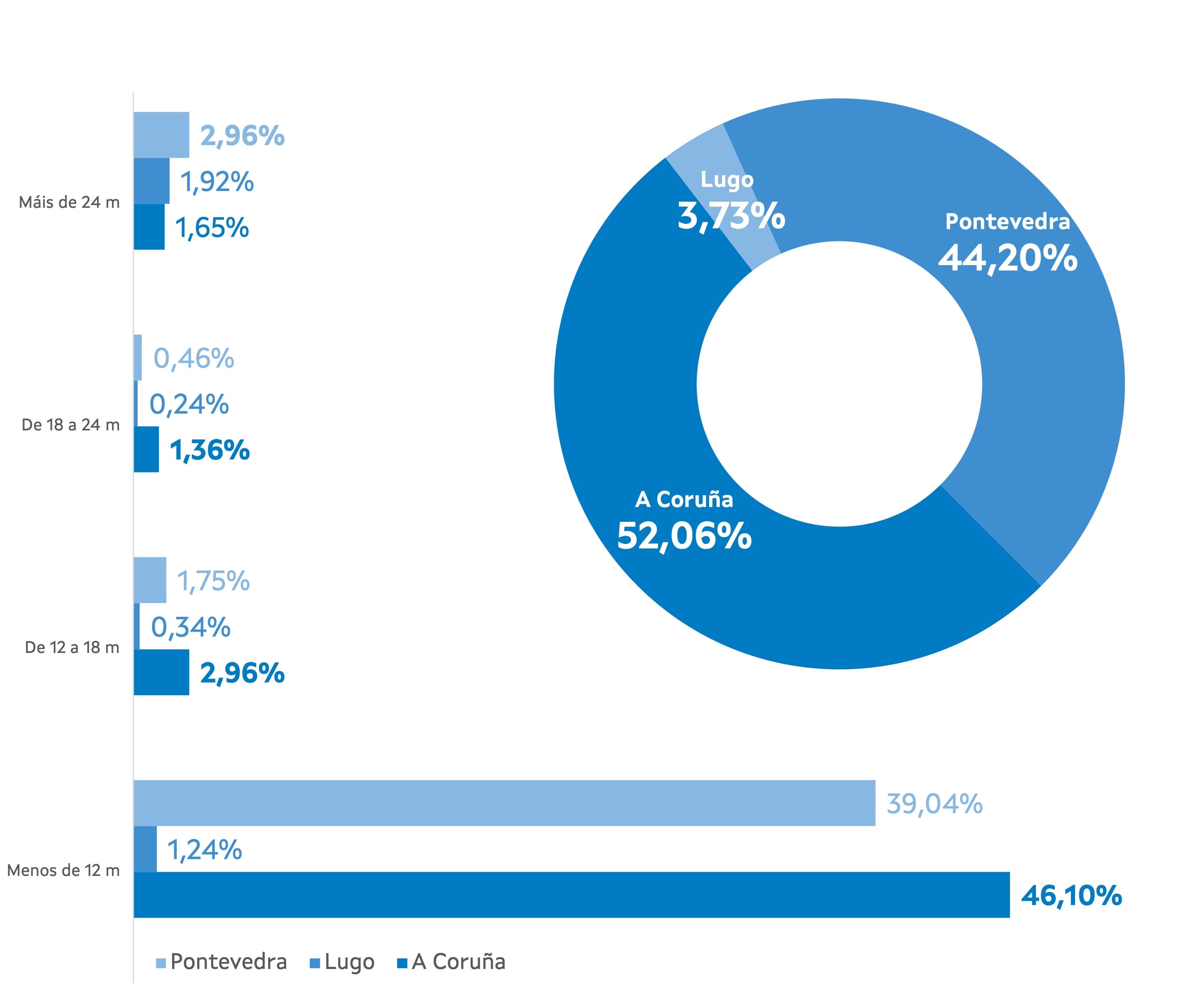 | Menos de 12 m | De 12 a 18 m | De 18 a 24 m | Máis de 24 m | Total | |||||||