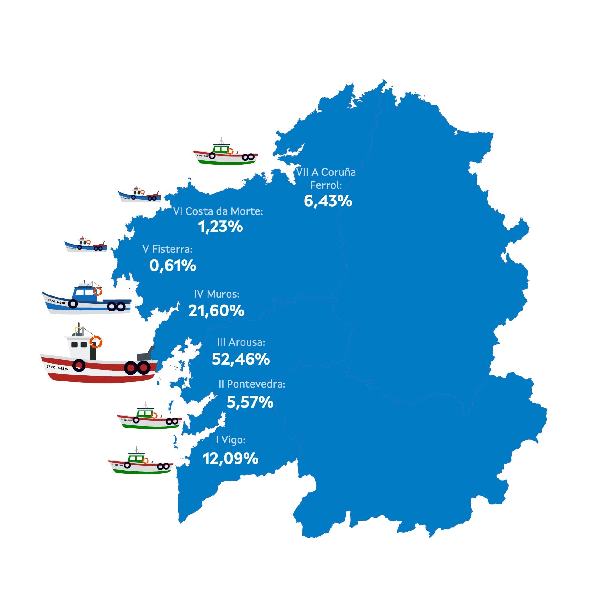 | Zona III - Arousa | 1.280 | -1,01% | 52,46% | -0,29% | 1.664 | -0,73% | 32.279 | -0,51% |