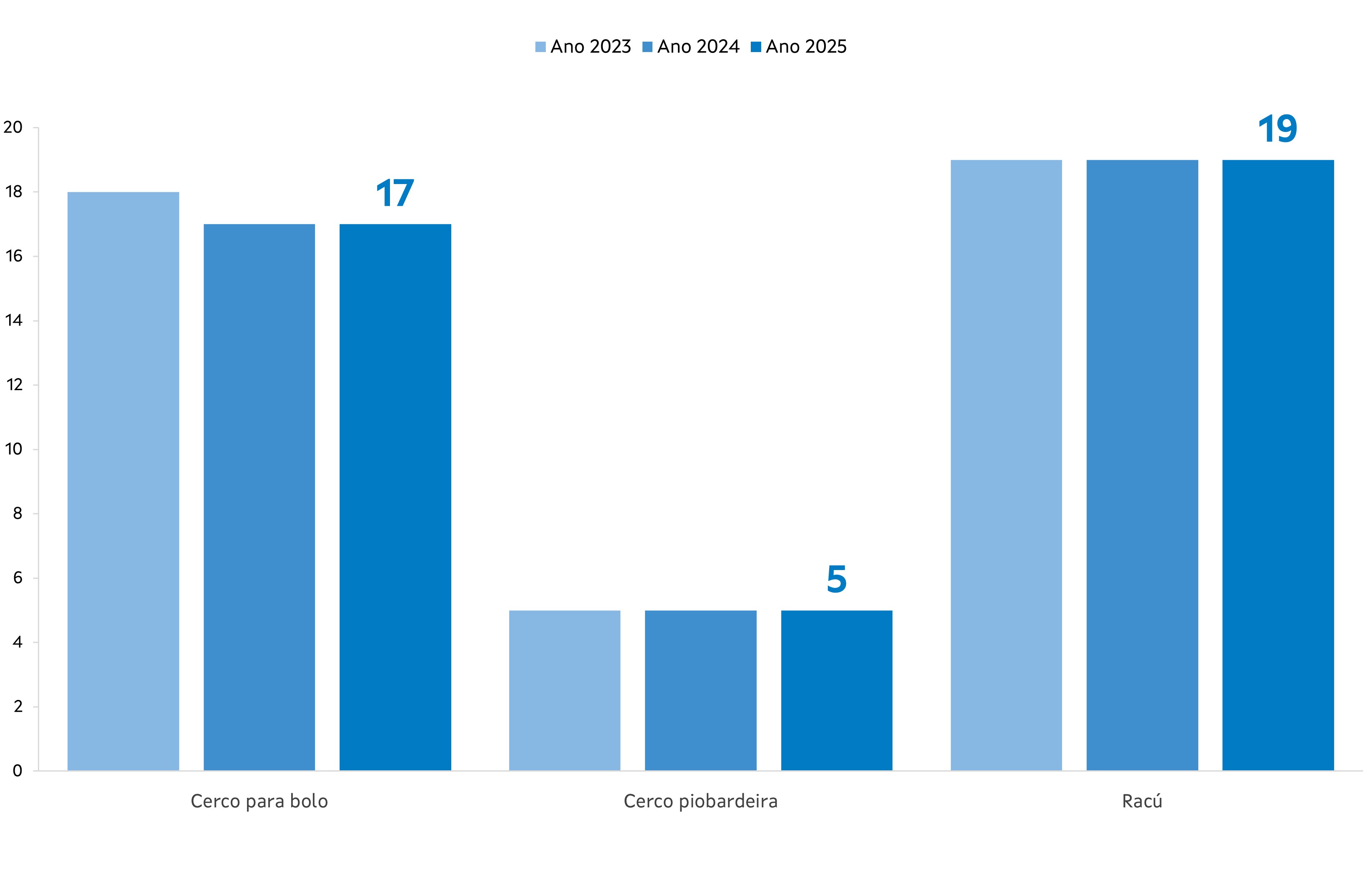 | Cerco para bolo | 17 | 0 | 8,65 | 0,00 | 5,06 | 0,00 | 41,05 | 0,00 |