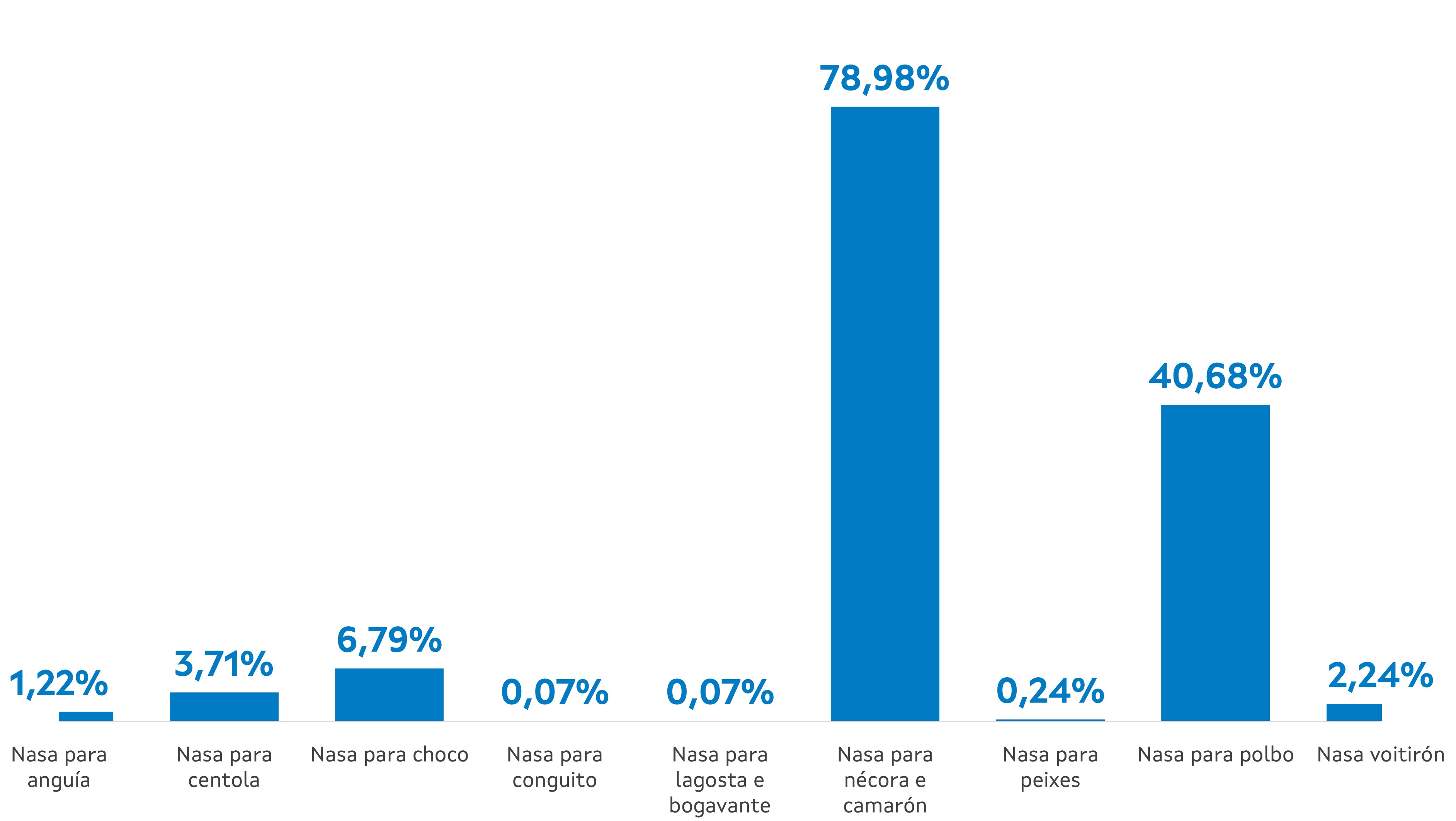 | Nasa para nécora e camarón | 2.258 | -0,79% | 78,98% | -0,27% | 4.259 | -0,64% | 63.007 | -0,72% |
