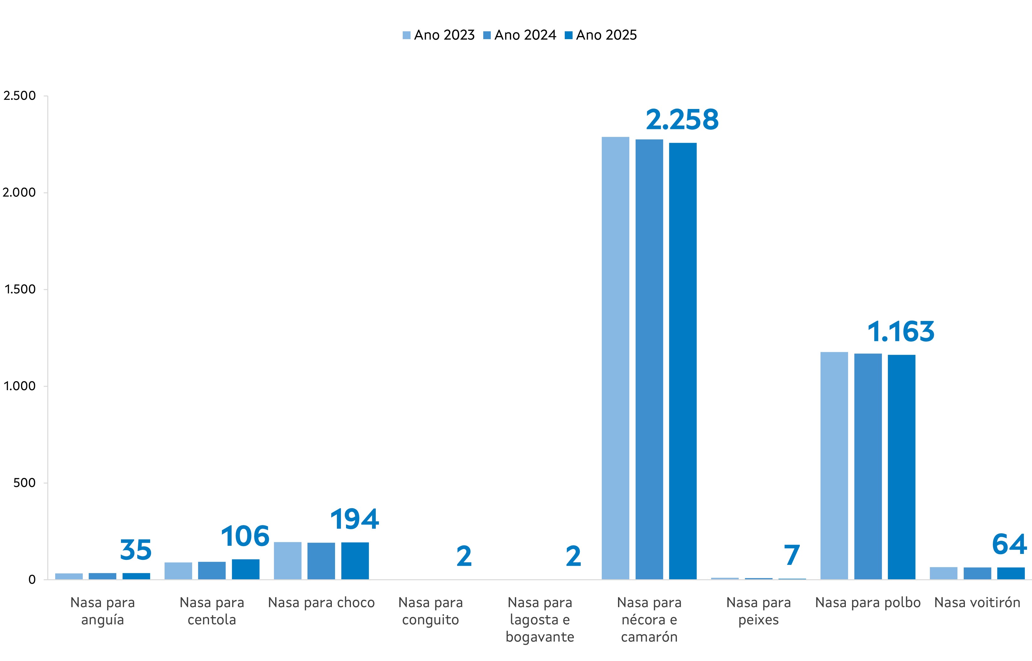 | Nasa para nécora e camarón | 2.258 | -18 | 6,24 | 0,01 | 1,89 | 0,00 | 27,90 | 0,02 |