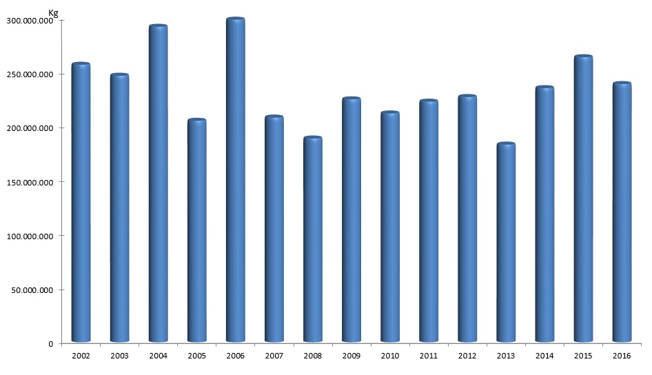 Comparativa de acuicultura do mexillón no 2016 e 2015