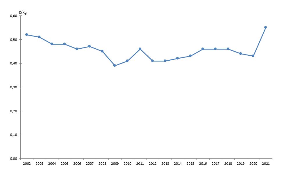 Comparativa de acuicultura do mexillón (viveiros flotantes) no 2021 e 2020