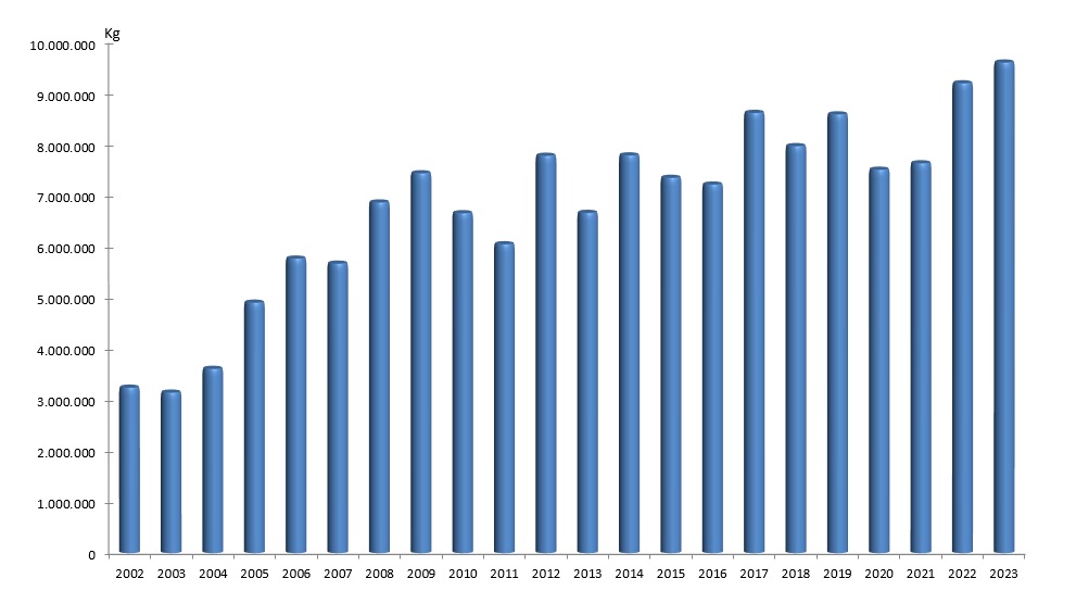 Comparativa da acuicultura do rodaballo no 2023 e 2022