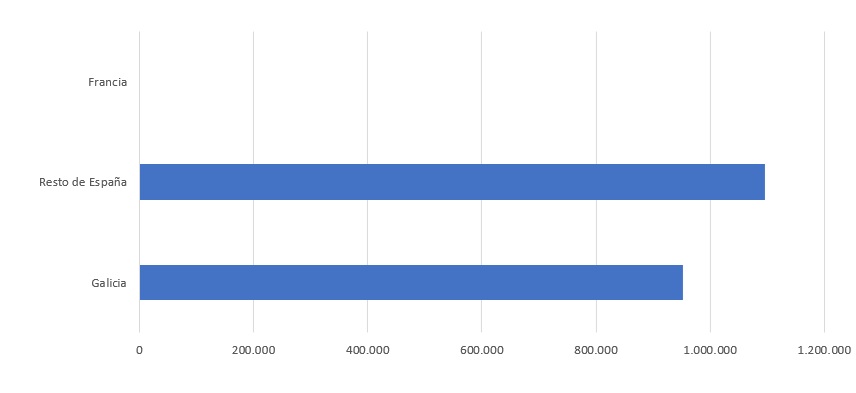 | Lugar de destino | Nº establecementos | Kg | % | Euros | % | Euros/Kg |