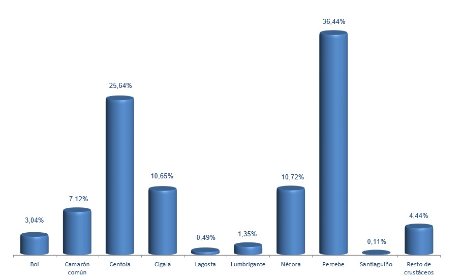 | Camarón común | 75.649 | 7,12% | 2.082.641 | 10,57% | 27,53 |