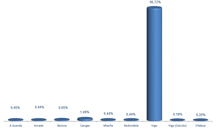 | Vigo (Canido) | 70.177 | 0,18% | 619.375 | 0,47% | 8,83 |
