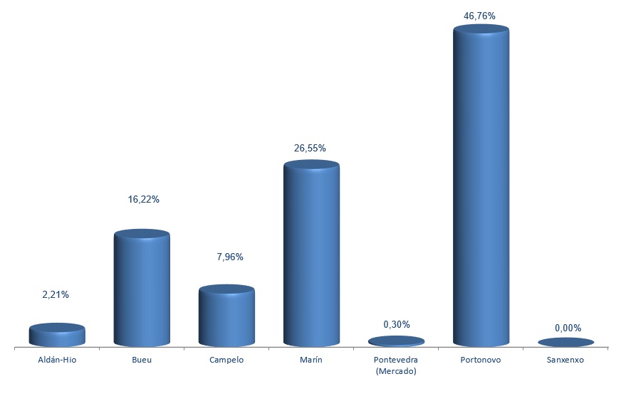 | Sanxenxo | 26 | 0,00% | 1.733 | 0,01% | 66,88 |