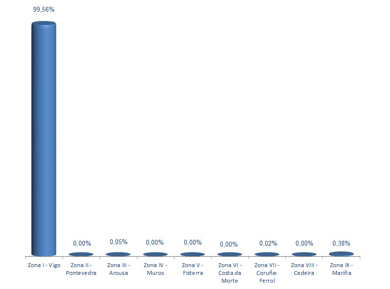 | Zona VII - Coruña-Ferrol | 3 | 410 | 0,02% | 255 | 0,01% | 0,62 |