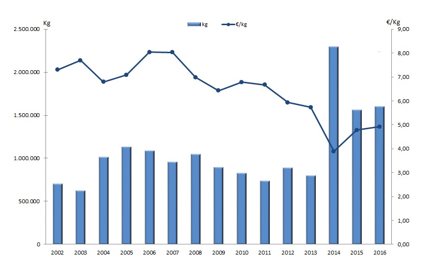 | Nº días | kg | % | Euros | % | Euros/kg | |