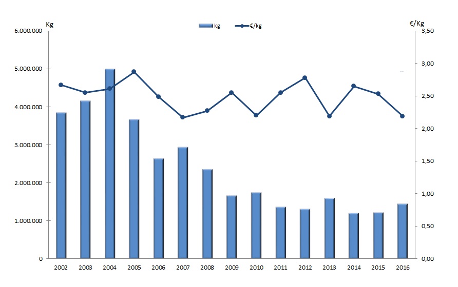 | Polbo cabezón | 251 | 77.513 | 5,36% | 125.991 | 3,98% | 1,63 |
