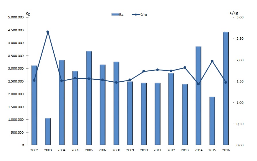 | Nº días | kg | % | Euros | % | Euros/kg | |