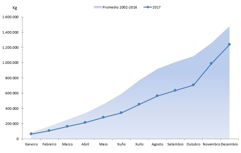 | Percebe | 343.493 | 9.573.208 | 387.137 | 9.526.385 | -43.644 | 46.823 | -11,27% | 0,49% |