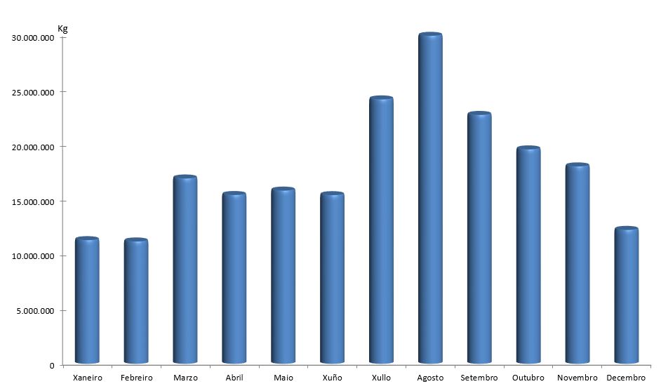 | Bivalvos | 519.303 | 576.992 | 656.554 | 492.064 | 575.000 | 558.038 | 685.667 | 810.563 | 888.582 | 668.515 | 1.599.229 | 1.704.606 | 9.735.110 |
