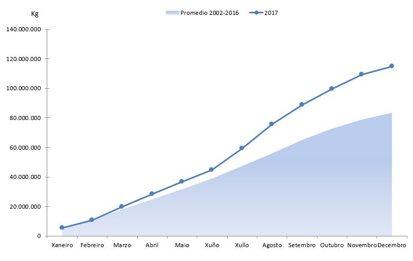 | Bivalvos | 5.023.793 | 37.162.769 | 3.570.398 | 28.822.486 | 1.453.395 | 8.340.283 | 40,71% | 28,94% |