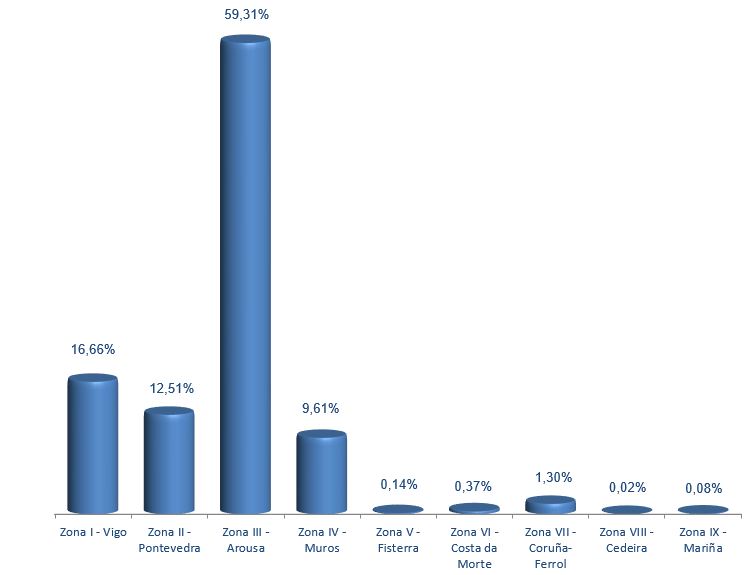 | Zona III - Arousa | 248 | 1.974.558 | 59,31% | 17.231.858 | 61,47% | 8,73 |