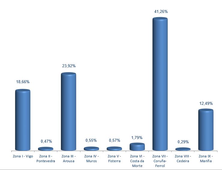 | Zona V - Fisterra | 201 | 10.783 | 0,57% | 16.305 | 0,50% | 1,51 |