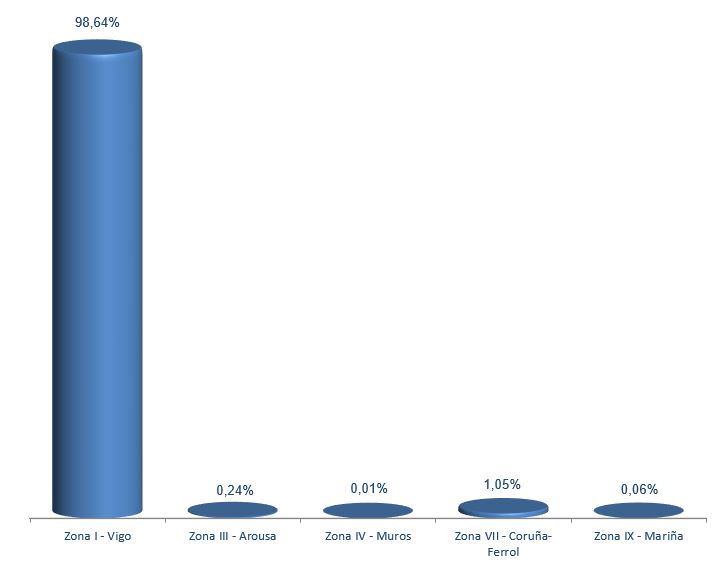 | Zona I - Vigo | 155 | 1.034.060 | 98,64% | 6.792.666 | 98,68% | 6,57 |