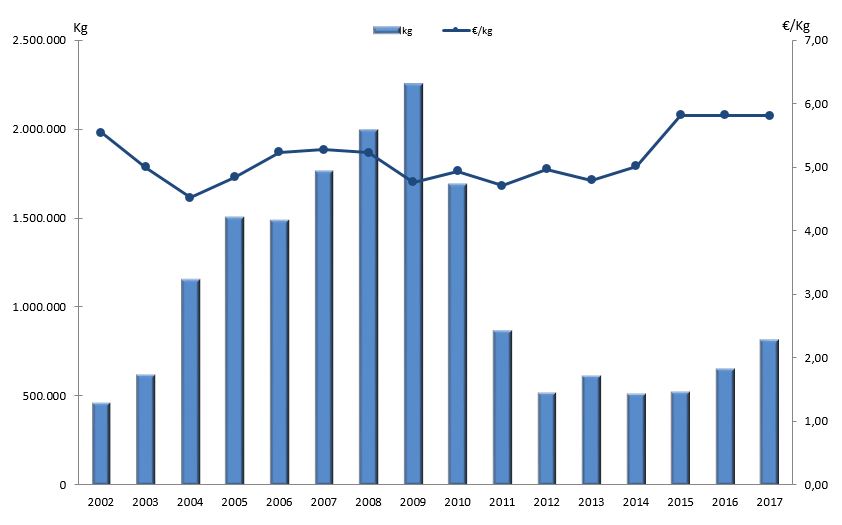 | Zona VIII - Cedeira | 1.469 | 233.396 | 195.038 | 222.509 | 70.254 | 76.718 | 104.025 | 143.698 | 145.844 | 178.146 | 151.962 | |