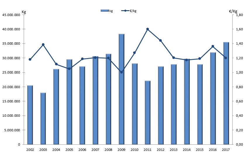 | Nº días | kg | % | Euros | % | Euros/kg | |
