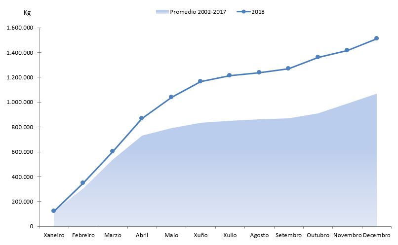| Ovas de pescada | 219.119 | 735.654 | 208.493 | 733.725 | 10.627 | 1.929 | 5,10% | 0,26% |
