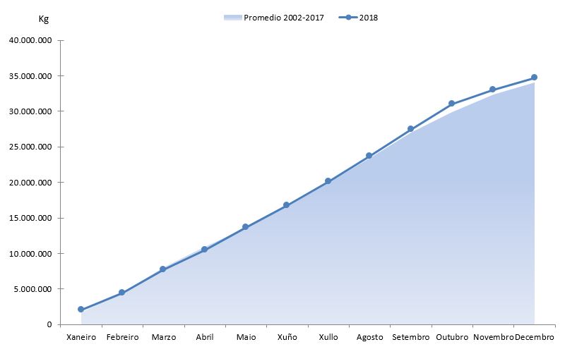 | Crustáceos | 311.573 | 5.598.360 | 312.277 | 5.723.398 | -704 | -125.038 | -0,23% | -2,18% |