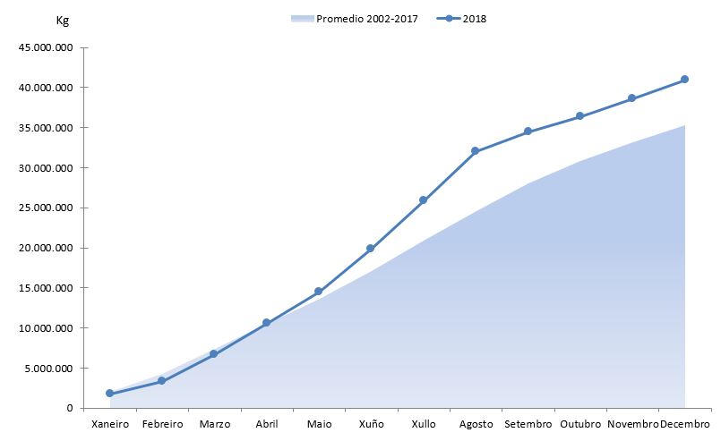 | Bivalvos | 439.252 | 3.499.260 | 476.566 | 3.643.292 | -37.315 | -144.032 | -7,83% | -3,95% |
