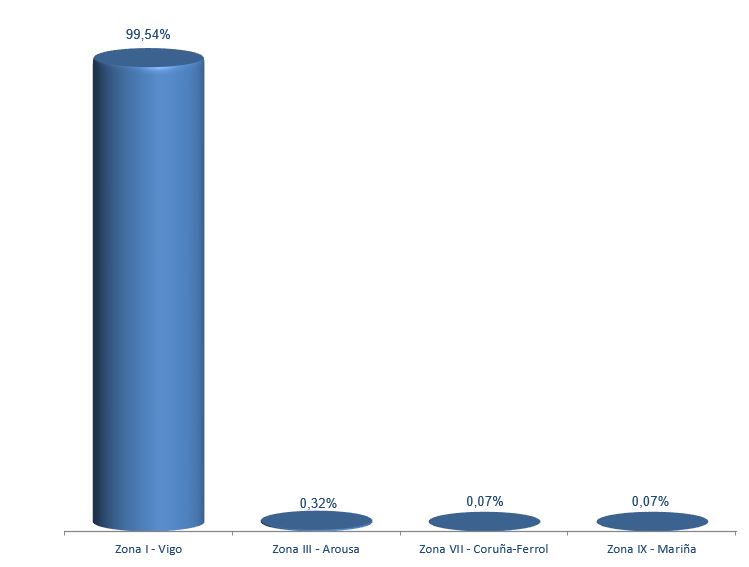 | Zona VII - Coruña-Ferrol | 4 | 556 | 0,07% | 4.195 | 0,07% | 7,55 |