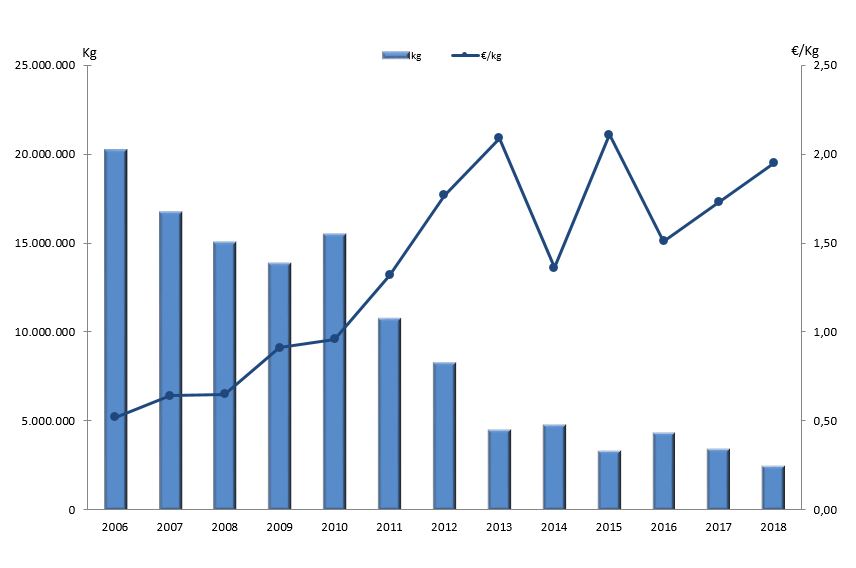 | Zona II - Pontevedra | 682.726 | 599.049 | 632.993 | 555.315 | 373.721 | 350.490 | 379.413 | 169.939 | 137.902 | 151.645 | 203.401 | 188.045 | 109.442 |