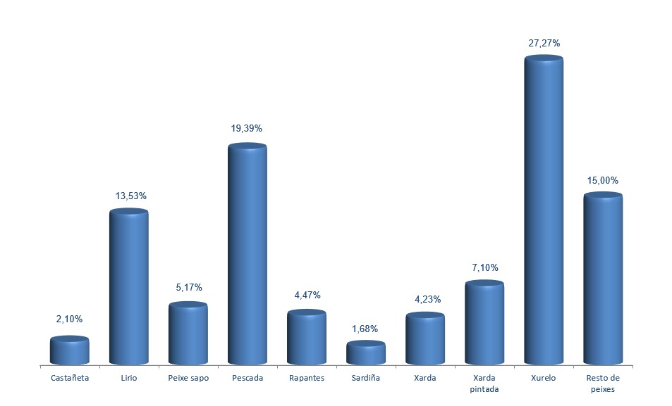 | Xarda pintada | 10.036.703 | 7,10% | 5.514.903 | 1,71% | 0,55 |