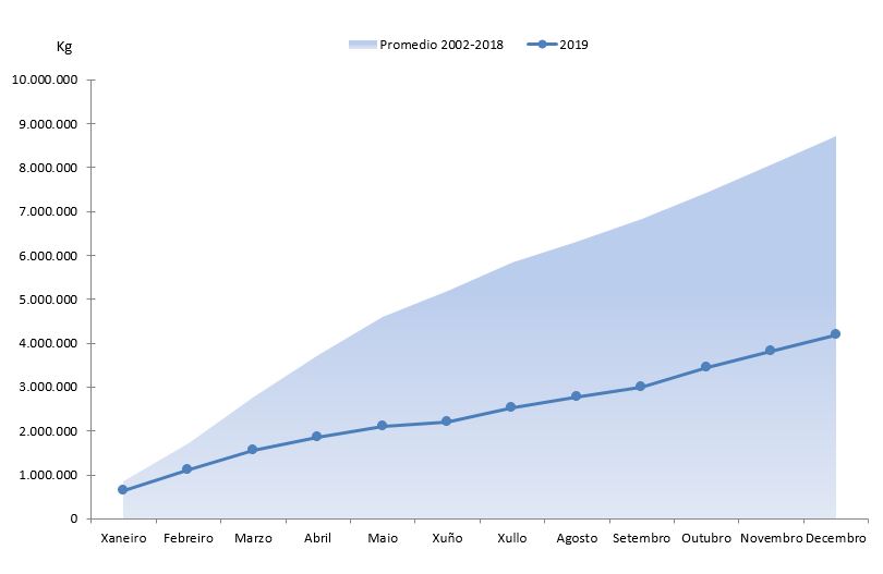 | Polbo cabezón | 303.059 | 816.916 | 322.856 | 805.813 | -19.798 | 11.104 | -6,13% | 1,38% |
