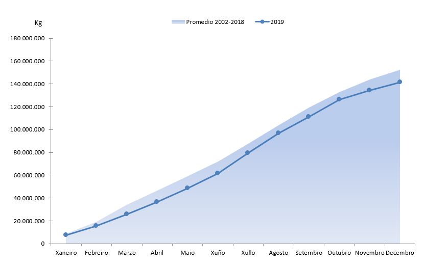 | Xarda pintada | 10.036.703 | 5.514.903 | 23.371.348 | 10.409.259 | -13.334.645 | -4.894.357 | -57,06% | -47,02% |